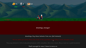 Learn about places where gold can be found, sell the guards’ helmets, and gather enough coins to buy a lead to a story location and complete the demo.